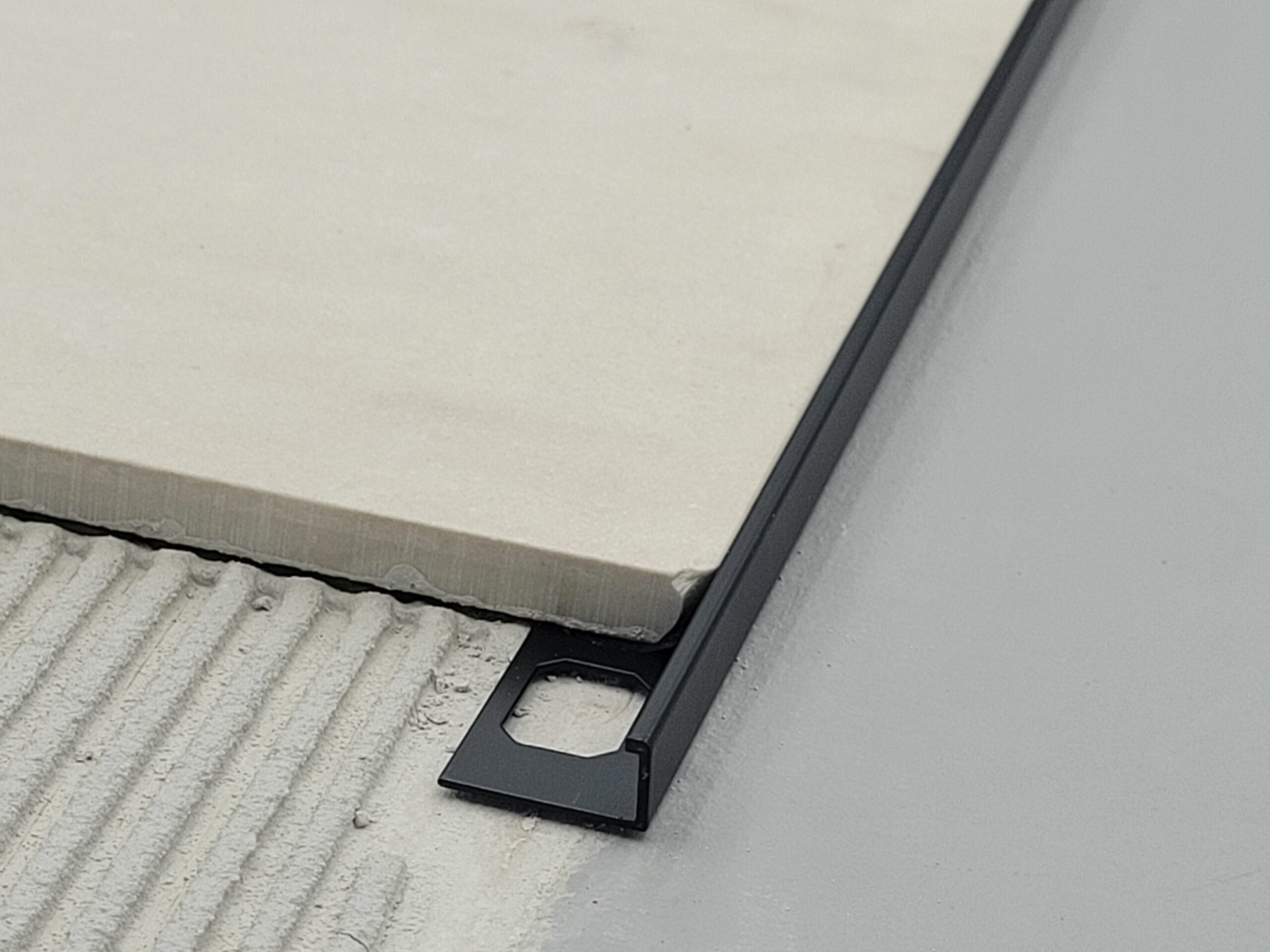 Afslutningsprofil i mat sort – lige profil til fliser og klinker