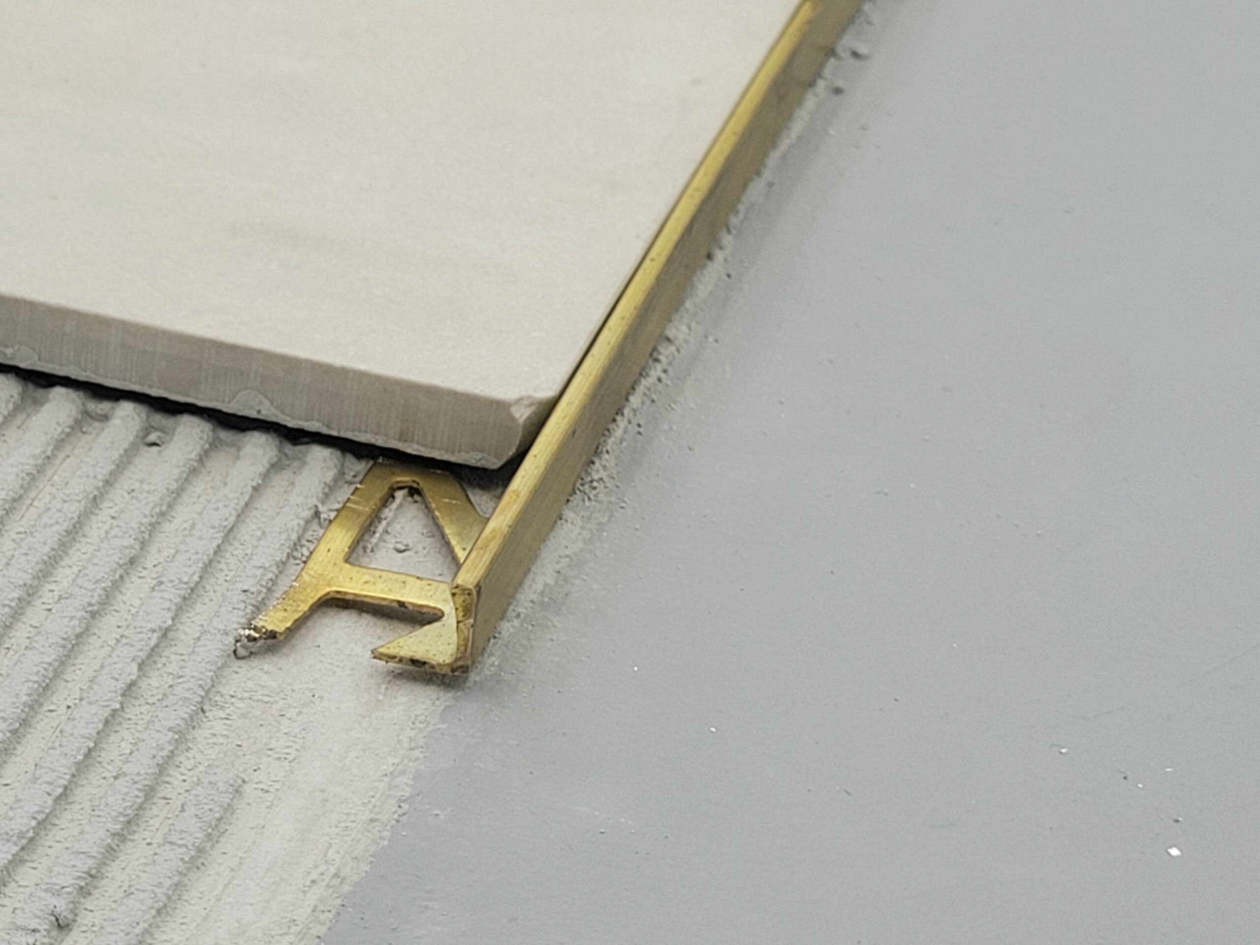 Afslutningsprofil i messing natur – lige profil til fliser og klinker i 100% ægte messing