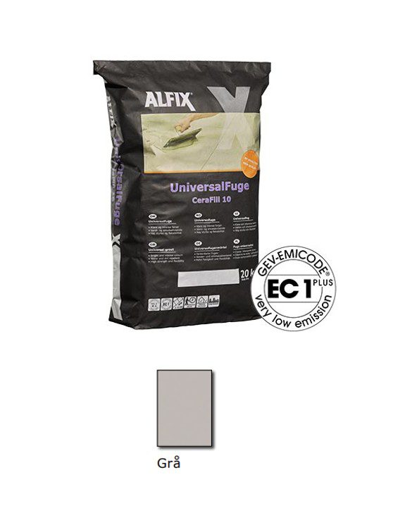 Alfix UniversalFuge – CeraFill 10 er en cementbaseret, kunststofforstærket fugemasse med lysægte pigmenter. Den er velegnet til fugning af keramiske fliser, klinker, mosaik og natursten med moderat eller lav sugeevne.