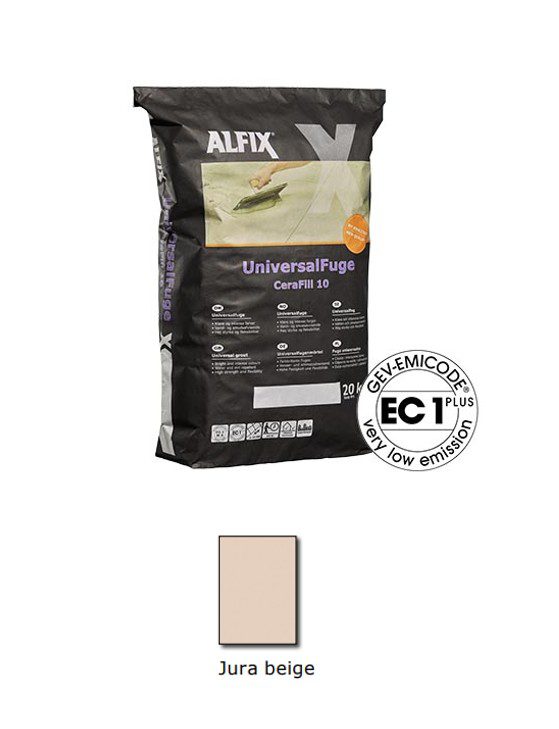 Alfix UniversalFuge – CeraFill 10 er en cementbaseret, kunststofforstærket fugemasse med lysægte pigmenter. Den er velegnet til fugning af keramiske fliser, klinker, mosaik og natursten med moderat eller lav sugeevne.