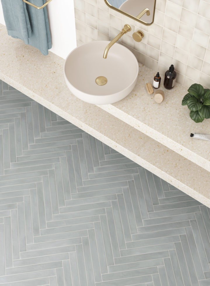 Den lette variation i den lyse, støvede blå farvetone skaber et levende og autentisk look, hvor hver flise får sit eget udtryk. Med sit slanke format kan Corsica Blue lægges i flere forskellige mønstre – fra klassisk sildebensmønster til lige eller forskudt lægning, hvilket giver dig mulighed for at skabe et helt personligt design.