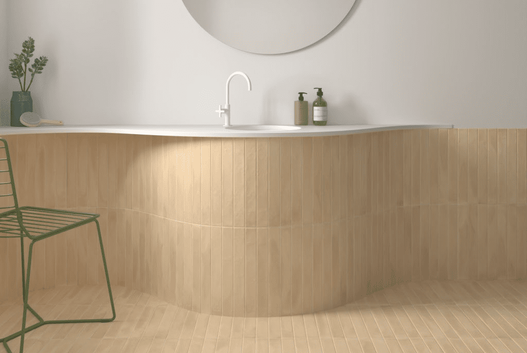 Corsica Golden er en elegant keramisk flise i formatet 5x40 cm, der kombinerer moderne design med høj funktionalitet. Den matte overflade med et silkeblødt touch giver et sofistikeret og behageligt udtryk, som passer perfekt til både gulv og væg.